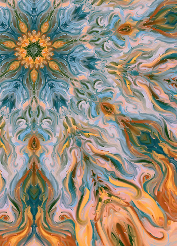 Prints can be made with full symmetry (12x12") or as an offset focus (13 x 19"). These are the paper sizes and include a white border for framing.