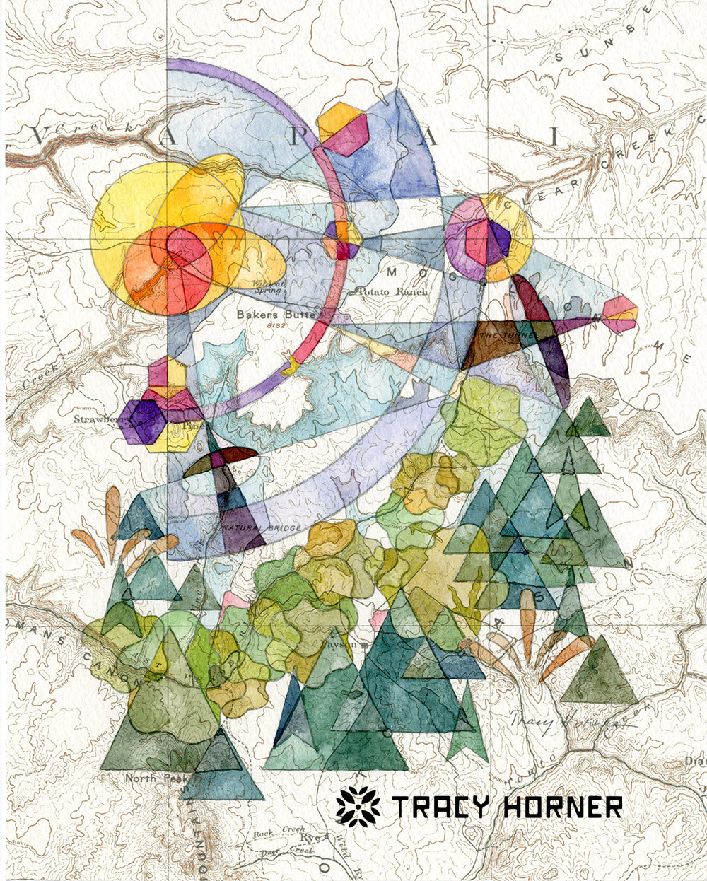 Cottonwood trees follow the curve of the river, giving over to pine trees as you get deeper into the Tonto National Forest. Ravens swoop in the air currents near Payson, Arizona on this Verde Quadrangle map from 1889. (Watermark is not on cards or print.)