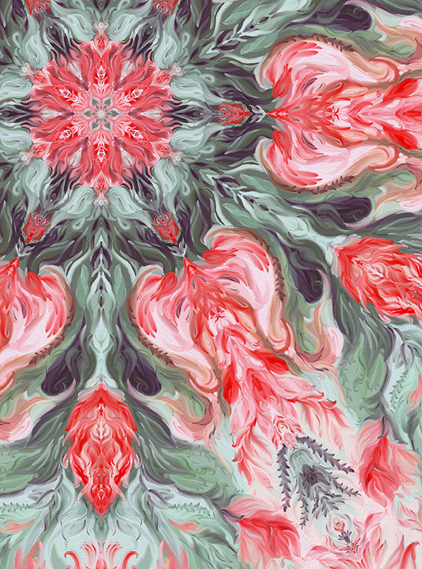 Prints can be made with full symmetry (12x12") or as an offset focus (13 x 19"). These are the paper sizes and include a white border for framing.
